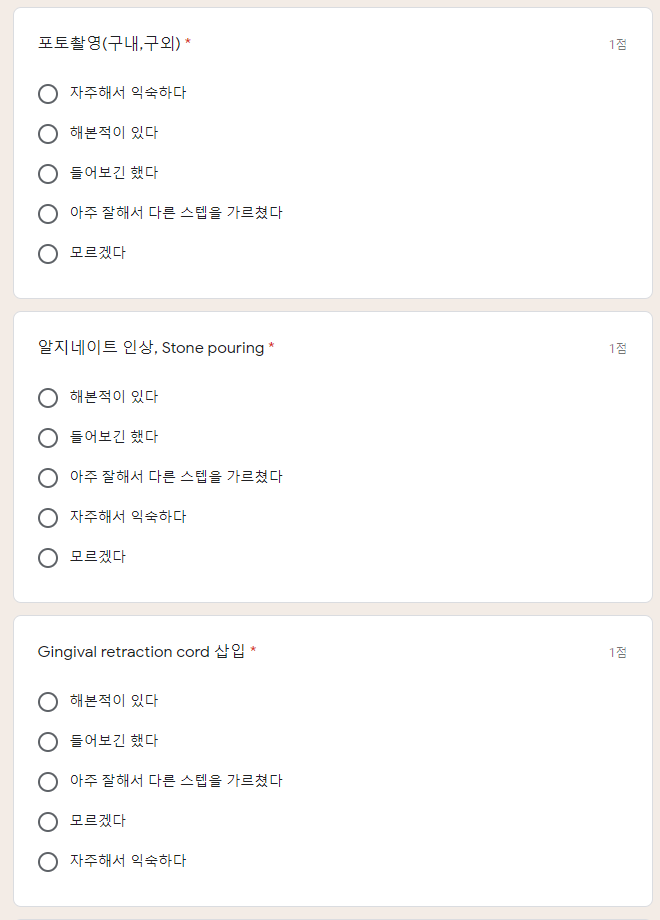 구글 설문지를 통하여 주기적으로 직원의 업무능력을 평가한다.